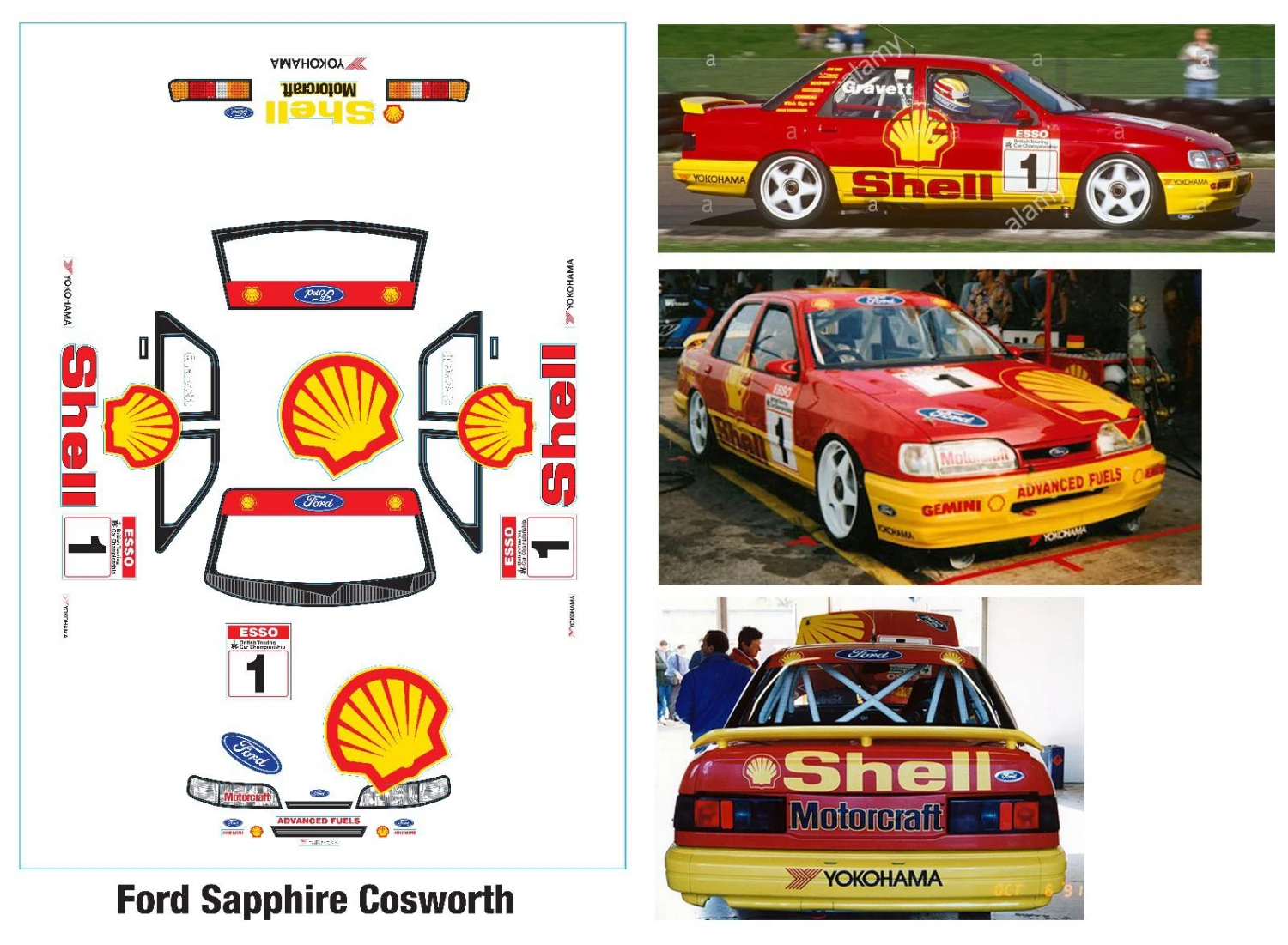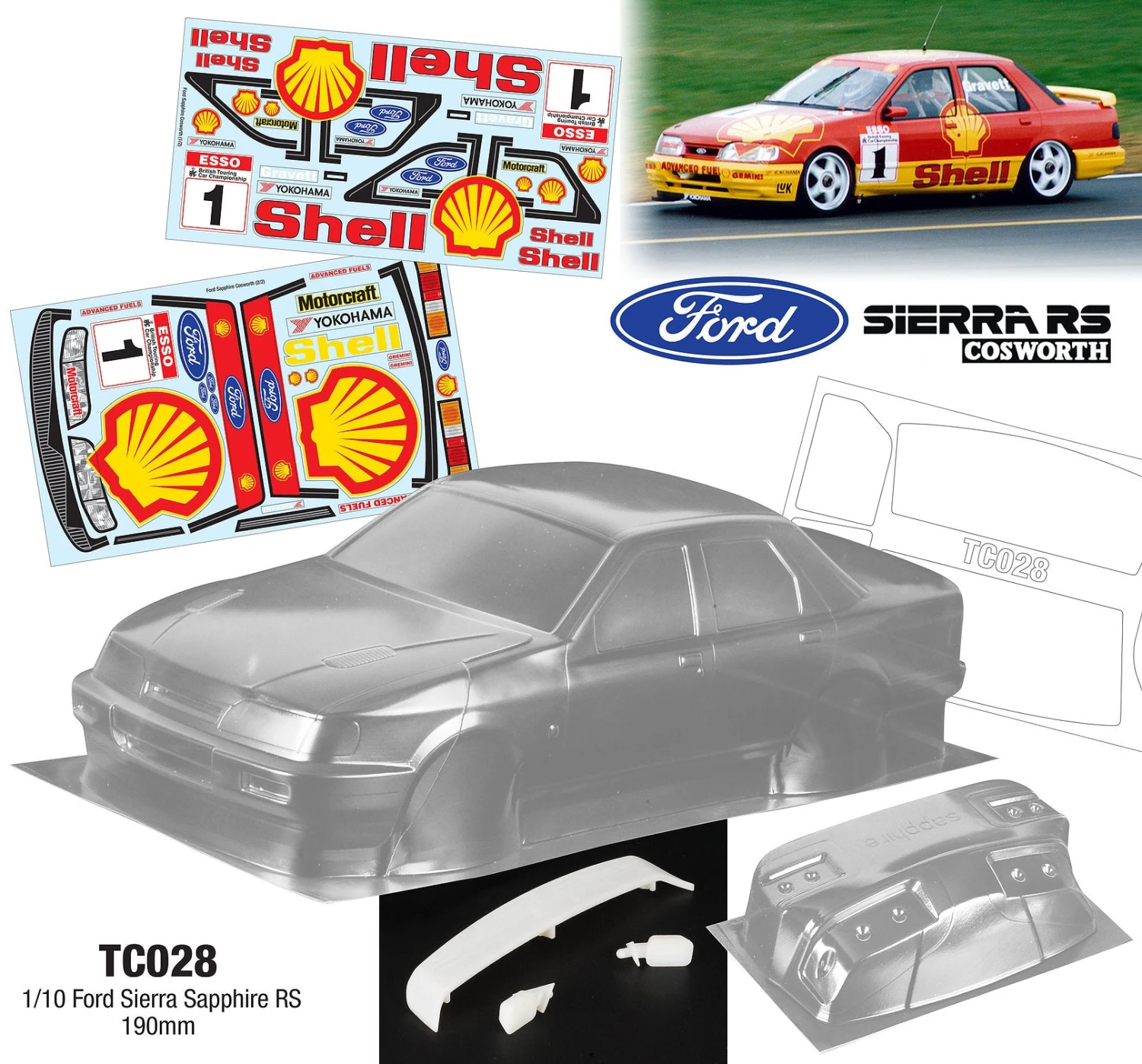 Ford Sapphire Cosworth Shell 190mm Tamiya TT01 TT02 257mm