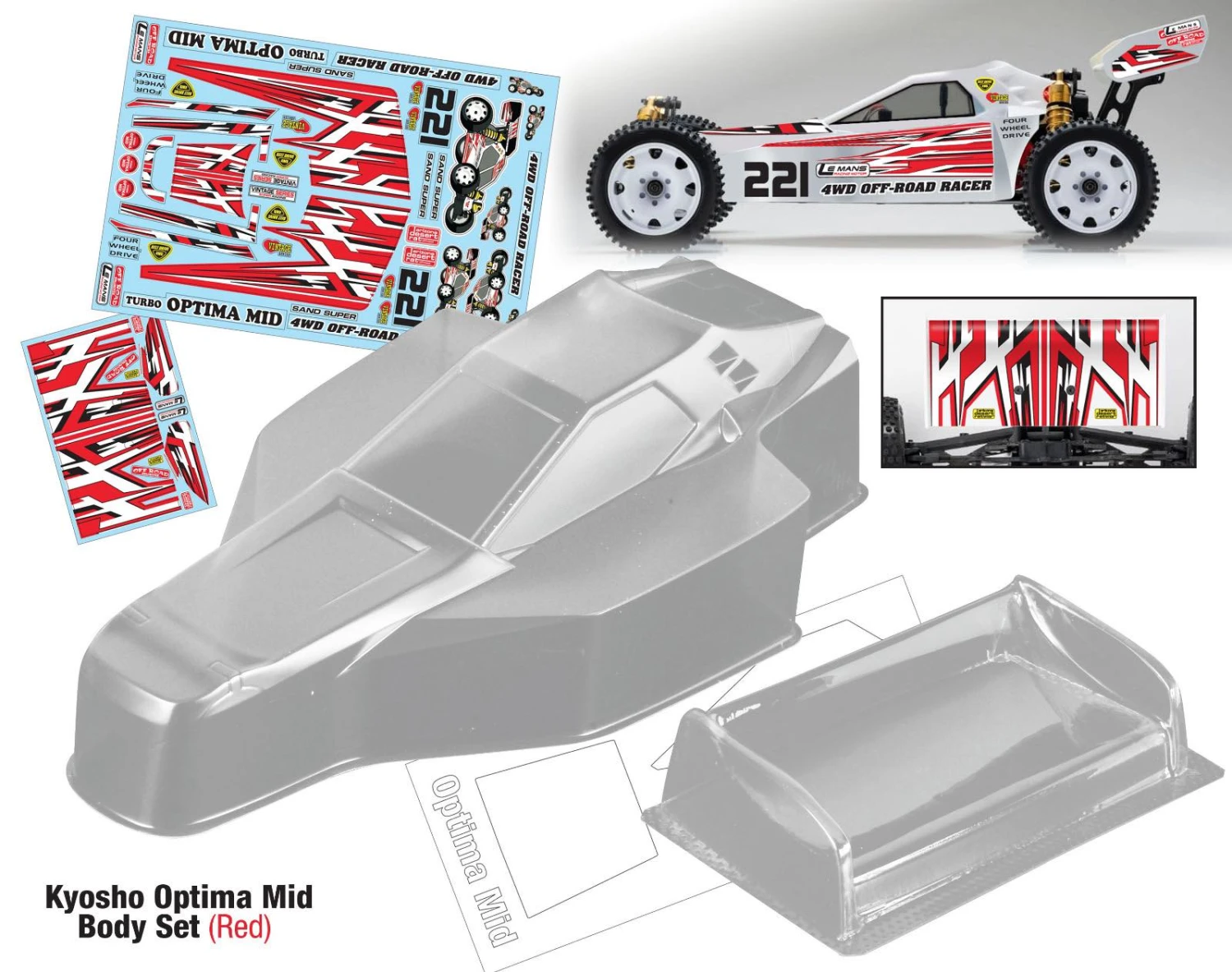 Kyosho Optima Mid Turbo Body & Wing Set Multi Options