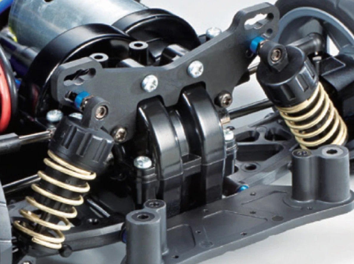 This is the TT-02 Type-S Chassis, which builds upon the shaft-driven efficiency of the original TT-02 4WD platform and provides it with new suspension parts plus other race-proven features. This enhanced version of the TT-02 is the perfect chassis for hobbyists looking to make the step up from beginner-level chassis to more advanced set-ups. This is the perfect entry level kit for hobbyists looking to enter club level R/C racing and it’s perfectly suited for the Tamiya Championship Series in the Spec GT class intended for entry level racers.