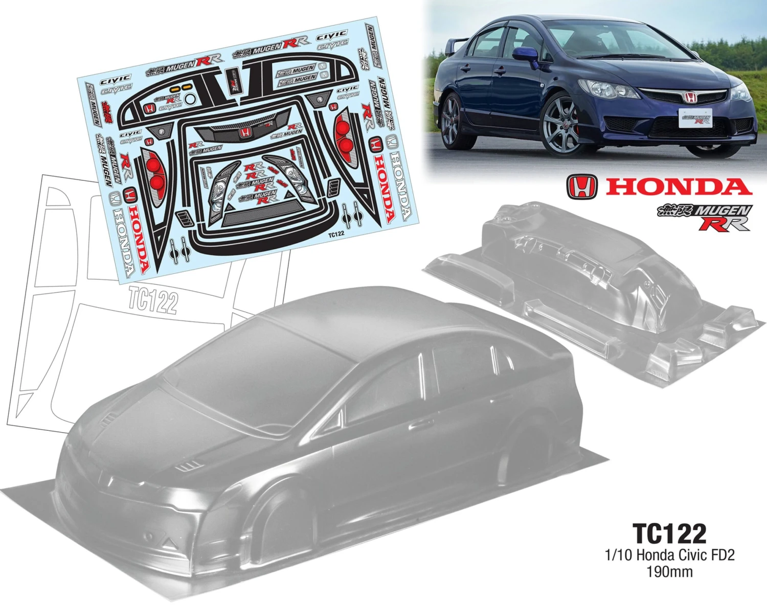 TC122 1/10 Honda Civic FD2, 190mm To Fit Tamiya TT01 TT02 HPI