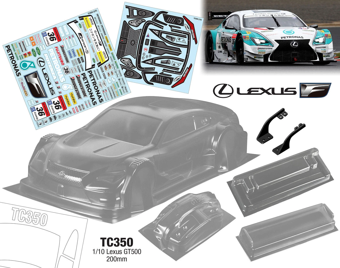 TC350 1/10 Lexus PETRONAS GT500, 200mm Tamiya TT01 TT02 Drift HPI Kyosho